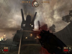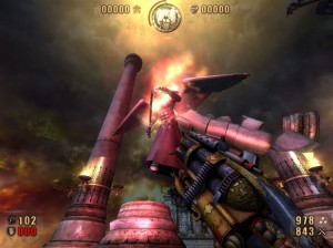 /Opět zlikvidujte bojovníky .Zneškodněte hlavně ty tři co jsou nahoře na kamenných sloupech.Ubírají vám dost energie takže je lepší se jich rychle zbavit.Ideální na ně je kůlomet.Až vyčistíte celý prostor tak projděte checkpintem po schodech dolů.Zabijte nepřátele a pak dalšími dvěma checkpointy projděte do velké haly plné luceren a houpajících se ježků.Pobijte mnichy i válečníky a projděte vpředu checkpointem.V uličce pobijte další nepřátele a projděte checkpointem vepředu.Sesbírejte na schodech munici a pak si dejte pozor na padající kameny.Zabijte svázané kostry a vyjděte checkpointem opět ven.Nyní budete muset porazit bosse.Je to obrovský vlkodlak.Má nad sebou ukazatel zdraví,které se mu asi ve třech vlnách vždy doplní na maximum.Musíte být hodně trpělivý a stále do něj střílet.Střílejte i do hlav které drží v rukou.Ideální zbraň byla ta kterou jsem použil i na velkého kriplčerta.Až ho zabijete tak se objeví bílý svítící portál /viz obrázek