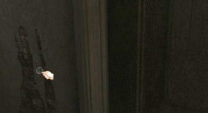 Jděte k autu,baterii vložte na své místo a vlezte do auta a klikněte na klíček.Náš hrdina prostě neopustí dům,dokud nepřijde záhadě na kloub.Takže vystupte a jděte směrem kolem fontány jakoby ke kapli.Podívejte se na věž nahoru a pak na kamenitou cestu.Snažte se najít místo na zemi ,kam dopadá stín věže.Je to opět špatně vidět a zas a znovu si musím postěžovat na titěrné hledání stínu,protože já ten stín nemohl dlouho najít./viz obrázek/